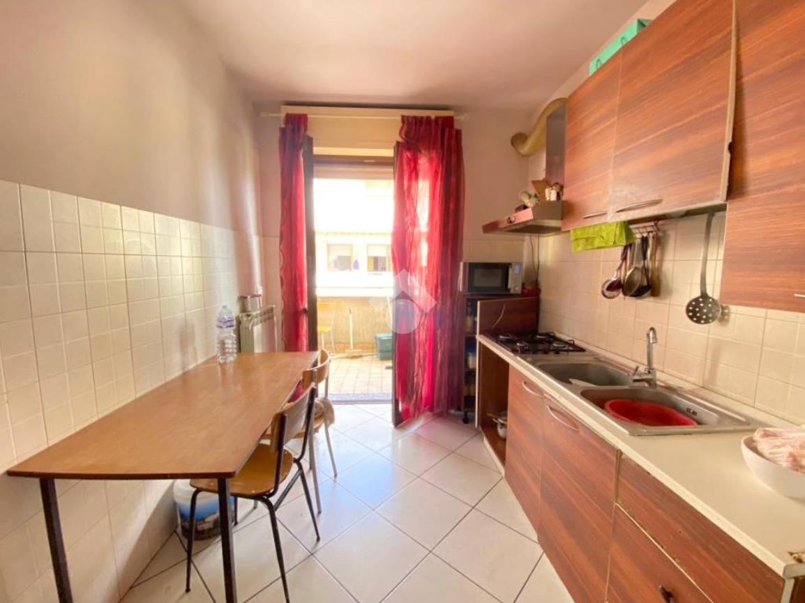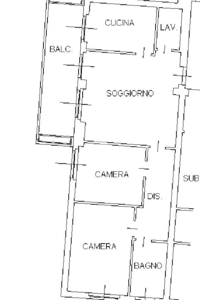 L'immobile è così meglio disposto: ingresso sull'ampio soggiorno, cucina separata abitabile con balcone, lungo corridoio, due camere da letto, bagno con vasca e lavanderia cieca.
